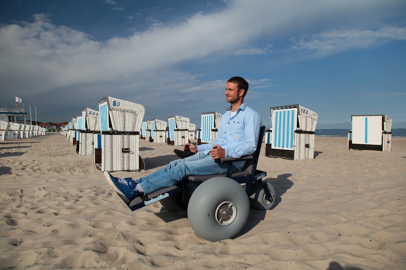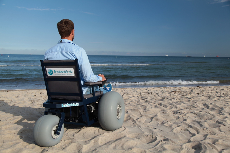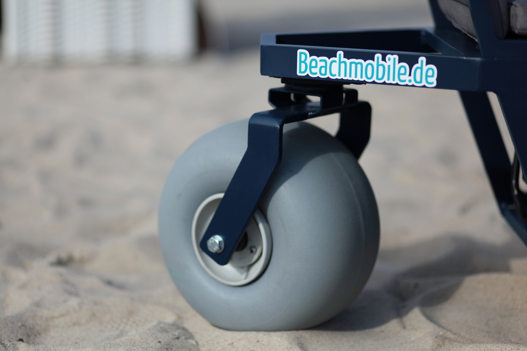 angenehme Dämpfung auf dem unebenen Sandstrand und zu bedienen ist das Beachmobile intuitiv und kinderleicht wie ein normaler Rollstuhl.