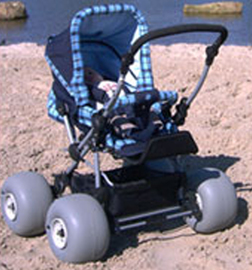 Mit dem Strand Kinderwagen können Sie zusammen mit Ihrem Kind jeden Winkel des Strandes entdecken und ausgedehnte Touren alleine oder mit Ihren Freunden unternehmen. Die übergroßen